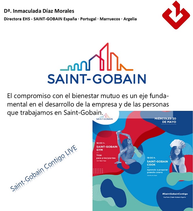 Entre todas las acciones que hemos implantado a nivel interno destaca Saint-Gobain Contigo LIVE. Un formato muy original y enriquecedor donde hemos ofrecido en directo y en exclusiva, a través del canal de YouTube de Saint-Gobain España, multitud de actividades de ocio y entretenimiento… También hemos organizado varios talleres con expertos en psicología o medicina para cuidar nuestro estado mental.